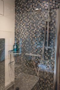 • Shower room with walk-in shower allows ground level access.