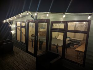 • Lounge with comfortable seating for 8 to 10 people, featuring a wood-burner, television, DVD and Bluetooth radio speaker.